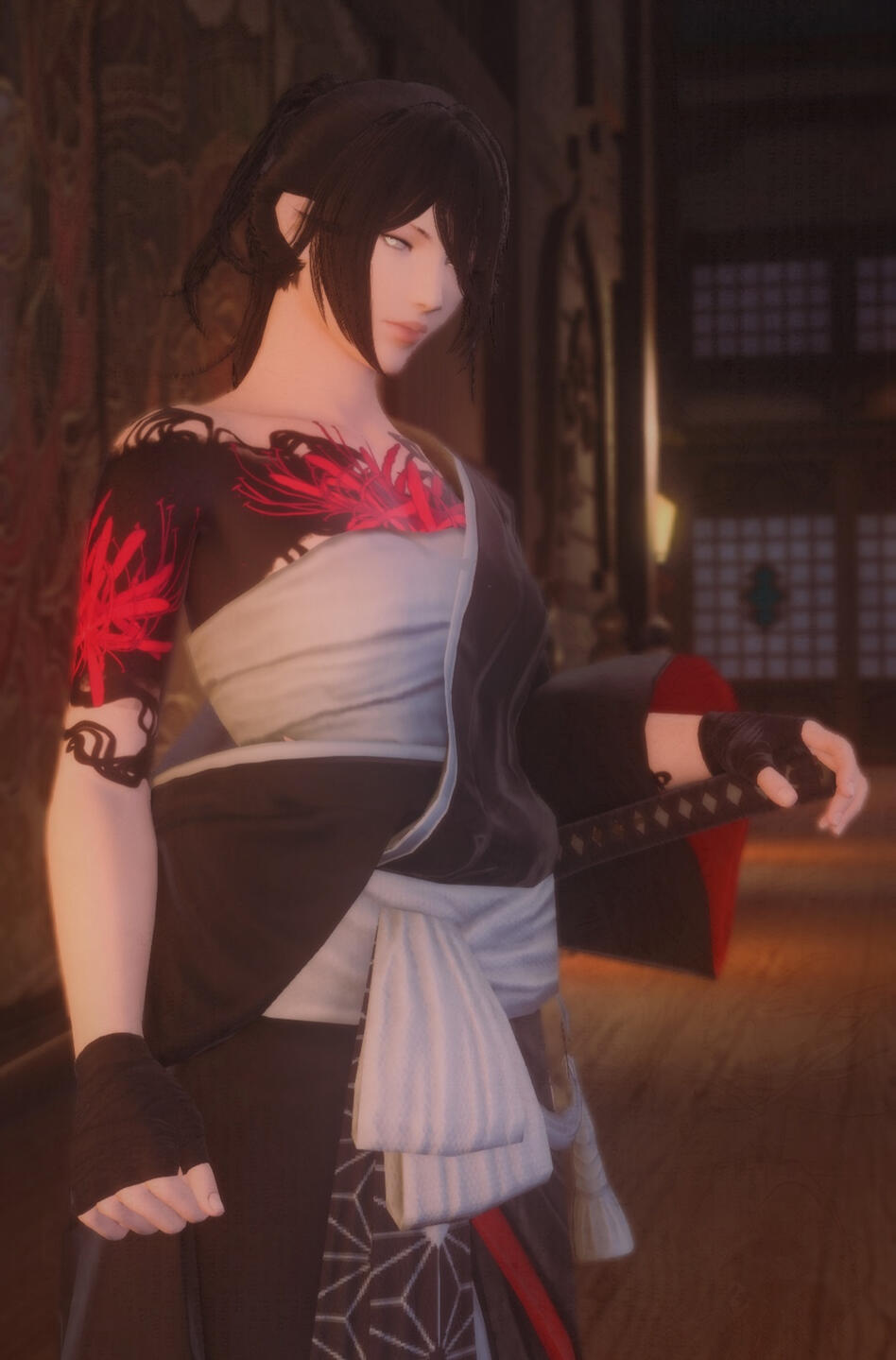 The Crane and the Scorpion: When Kaneyo speaks in her mother tongue of Hingan, it is purest silk. Elegant, bordering on archaic, and unfailingly, unflinchingly polite. To those who have stepped past Kugane, it might bring to mind a court, full of fans hiding knives, of suns and nights in the high halls...but this is just a wandering ronin. How strange.
